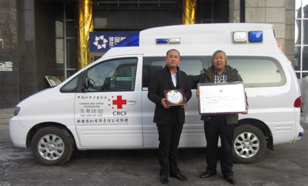 2014年11月向巴里坤紅十字會捐贈價值30萬的救護車一輛;