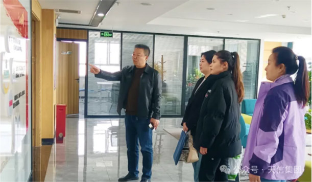 2024年3月29日下午,天山區總工會和解放南路街道領導一行六人,在工會組織建設負責人胡靜文的帶領下到新疆天信集團,圍繞創建“職工之家”的相關工作現場進行指導、交流。
