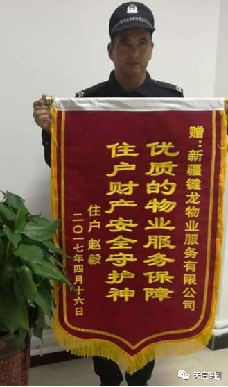 ? ? 2017年4月16日下午,鍵龍二期物業服務中心收到一面來自業主的錦旗,“優質的物業服務保障,住戶財產安全守護神”,醒目的十八個字贊揚了鍵龍物業安保人員的敬業精神。? ? 4...